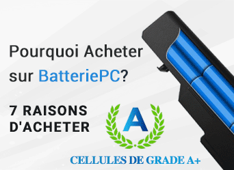Bienvenue sur Batteriepc.fr ! Nous sommes une boutique en ligne française spécialisée dans les batteries pour ordinateurs portables. Nous vous garantissons que toutes nos batteries utilisent des cellules de haute qualité, sont 100 % compatibles avec votre appareil, se chargent plus rapidement et ont une durée de vie prolongée. Pour toute question concernant la compatibilité ou nos batteries, n'hésitez pas à contacter notre service client, toujours disponible et professionnel.