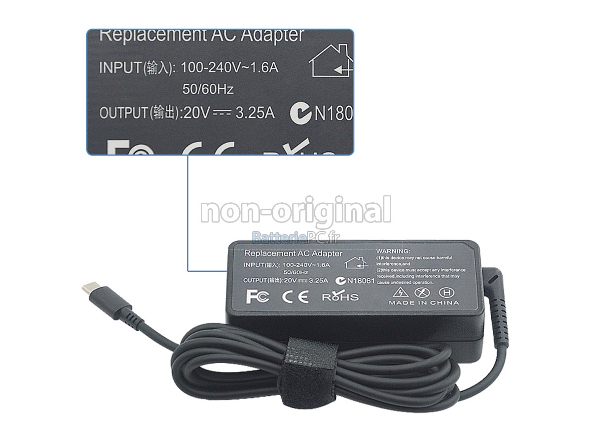 65W adaptateur pour Lenovo 4X20M26271 notebook pc