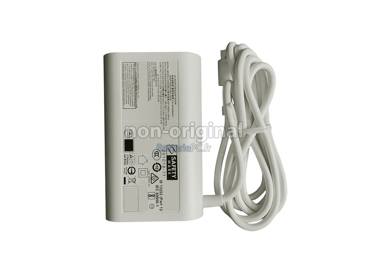 - Vérifiez les informations de l'adaptateur d'origine : Tout d'abord, trouvez les informations relatives à l'adaptateur d'origine de votre appareil, y compris la tension d'entrée (tension AC), la tension de sortie, le courant de sortie (ou la puissance) et le type de connecteur (par exemple, connecteur DC rond, USB-C, etc.). Ces informations sont généralement indiquées sur l'adaptateur lui-même ou dans le manuel d'utilisation.