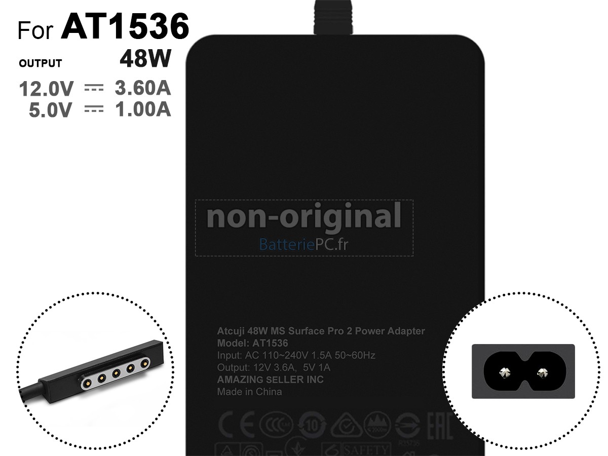 Soyez rassuré d'acheter la adaptateur pour Microsoft 12V 3.6A 48W notebook pc!
