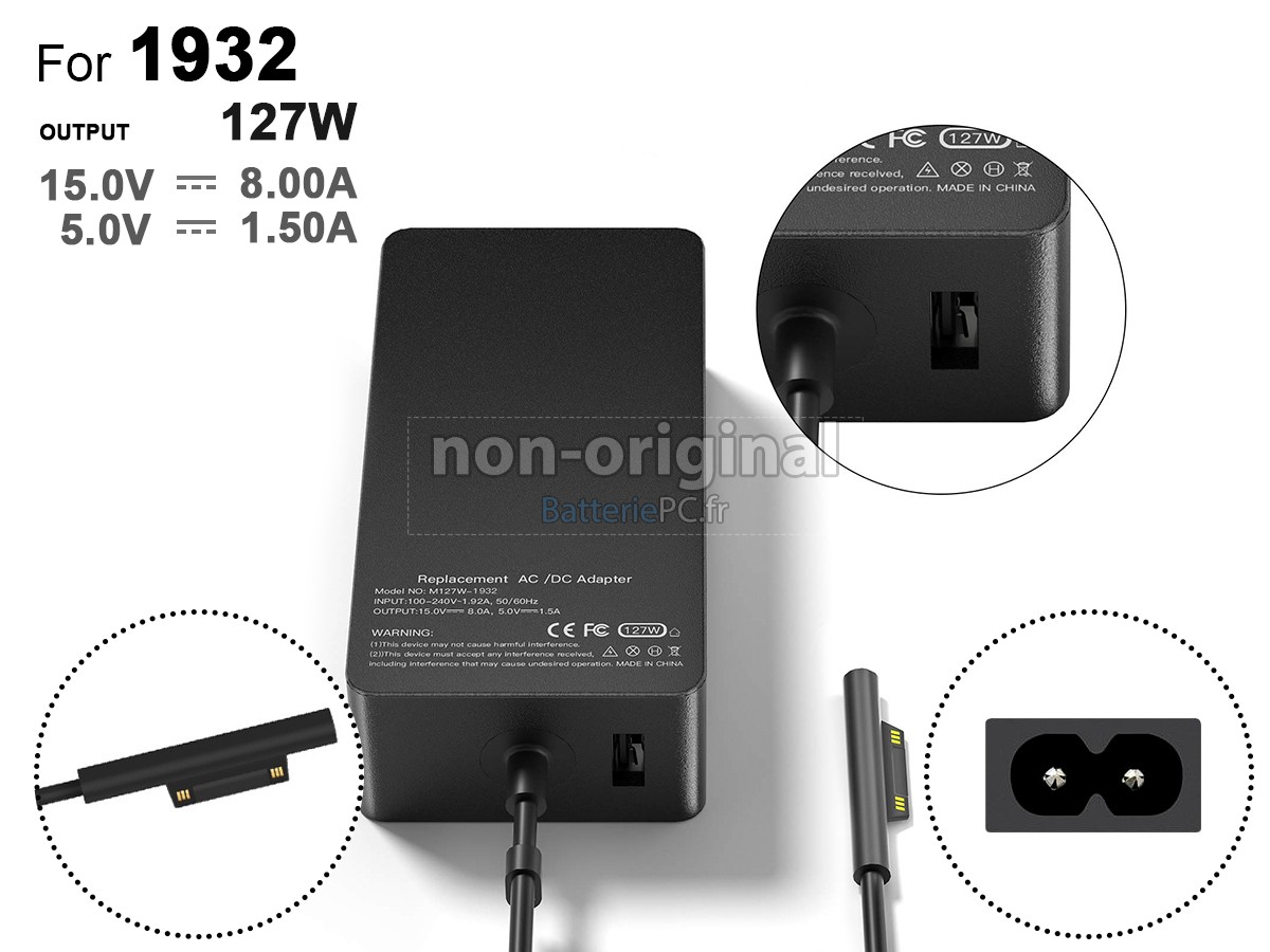 Soyez rassuré d'acheter la adaptateur pour Microsoft Surface 127W notebook pc!
