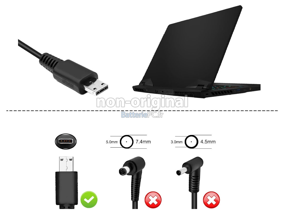 Les adaptateurs vendues sur batteriepc.fr sont des produits de remplacement de haute qualité. Les logos et les marques concernées appartiennent au registraire d'origine. Les marques et les modèles mentionnés ici par nous sont uniquement pour vous montrer la compatibilité des produits, afin que les clients puissent acheter correctement les produits dont ils ont besoin. En cas d'insatisfaction sur nos produits, veuillez nous contacter en ligne ou nous écrire via e-mail. Nous vous répondrons dans les 24 heures. Notre objectif est de rendre le client satisfait à 100%.