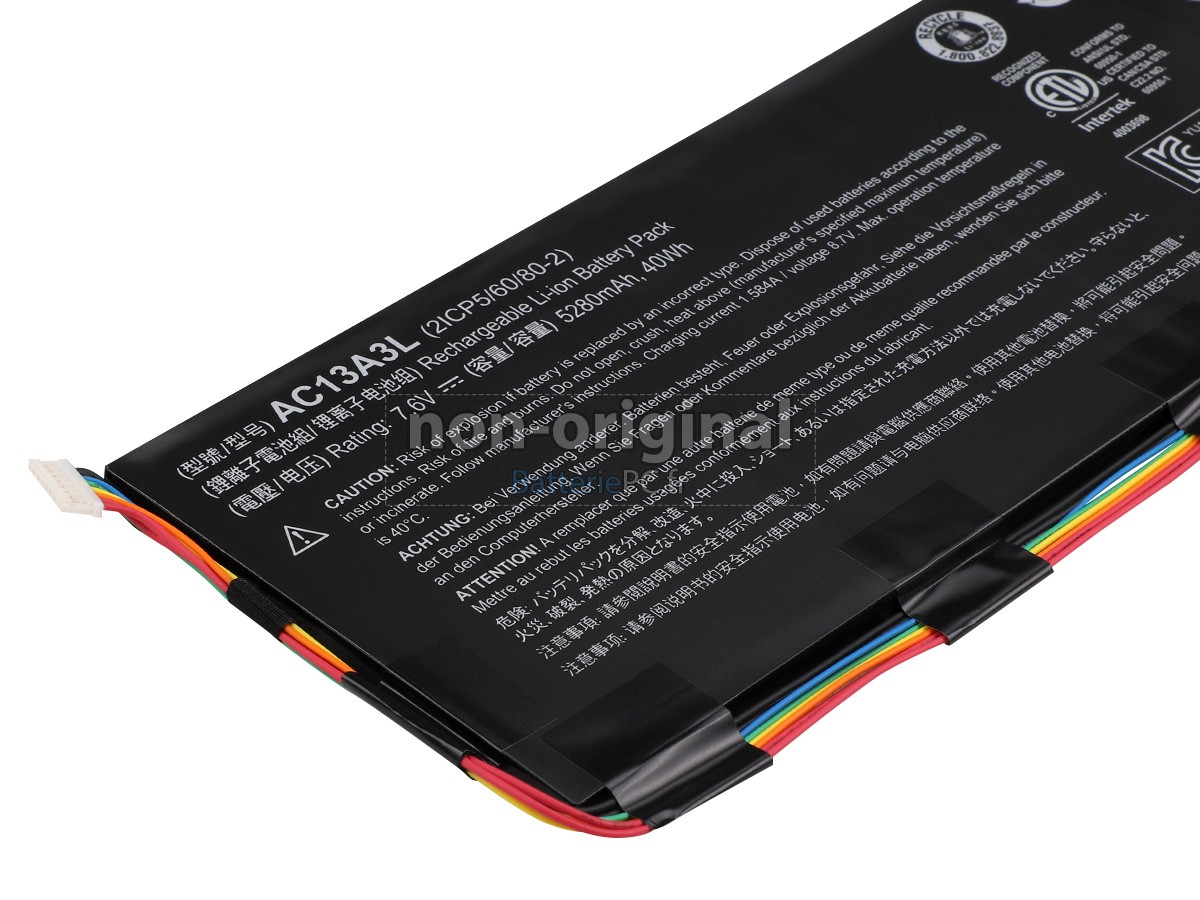 Nous utilisons la puce de Texas (USA) intelligente, pour vous assurer que la batterie se charge plus rapidement, et que la précision de la détection de la température, de la tension et du courant est plus fiable; le boîtier de la batterie conçue est identique à celle d'origine, 100% compatible avec votre ordinateur portable, pour que notre batterie ordinateur portable Acer AC13A3L est compatible complètement avec votre ordinateur portable, et que vous seriez plus rassuré lors de l'utilisation de ces batteries.