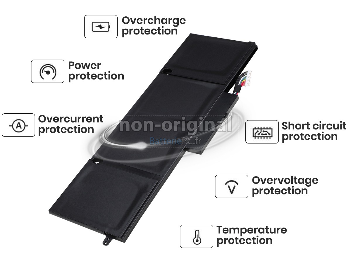 Nous utilisons la puce de Texas (USA) intelligente, pour vous assurer que la batterie se charge plus rapidement, et que la précision de la détection de la température, de la tension et du courant est plus fiable; le boîtier de la batterie conçue est identique à celle d'origine, 100% compatible avec votre ordinateur portable, pour que notre batterie ordinateur portable Acer AP13D3K est compatible complètement avec votre ordinateur portable, et que vous seriez plus rassuré lors de l'utilisation de ces batteries.