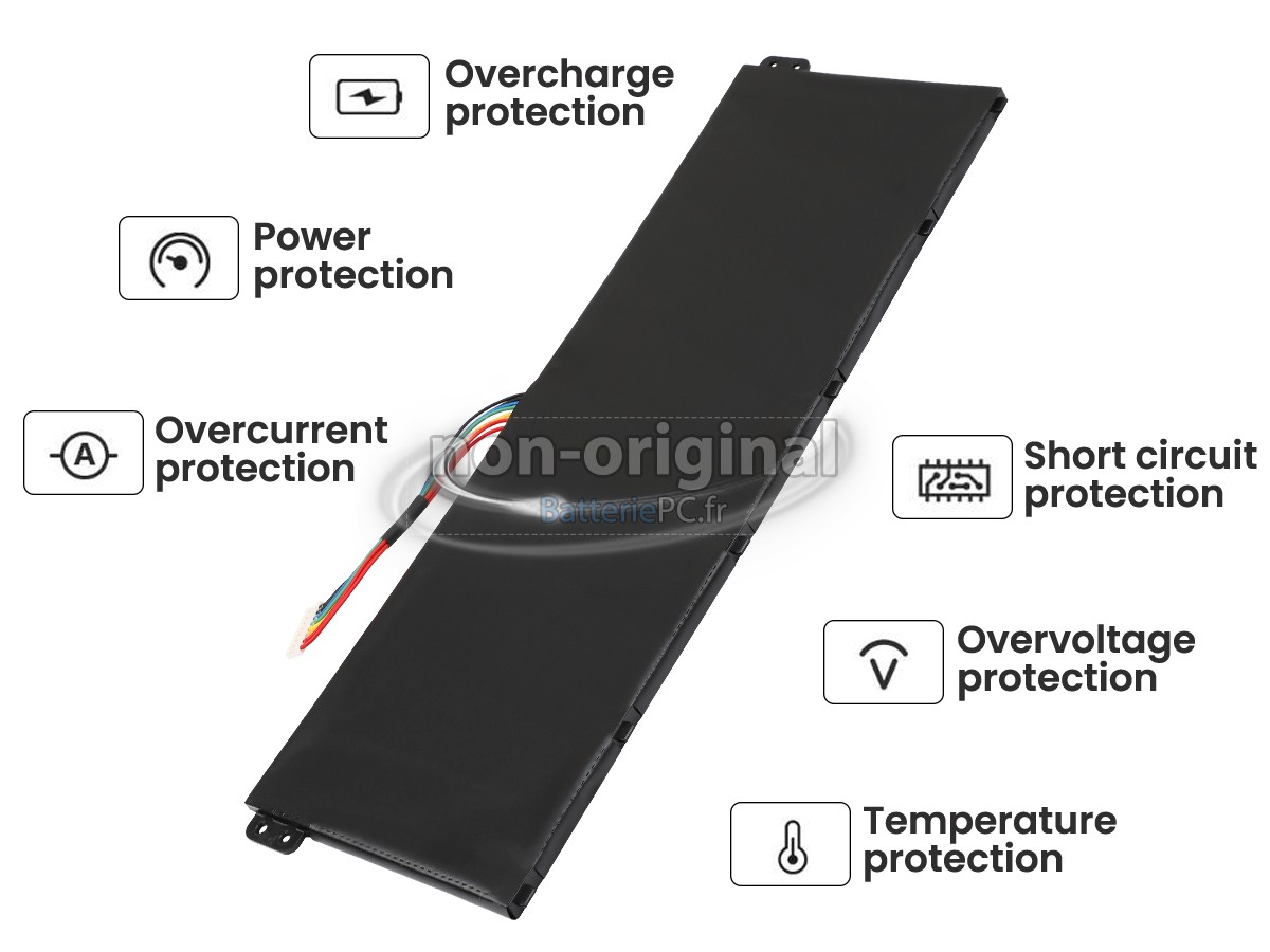 Nous utilisons la puce de Texas (USA) intelligente, pour vous assurer que la batterie se charge plus rapidement, et que la précision de la détection de la température, de la tension et du courant est plus fiable; le boîtier de la batterie conçue est identique à celle d'origine, 100% compatible avec votre ordinateur portable, pour que notre batterie ordinateur portable Acer Aspire 3 A311-31-C2WP est compatible complètement avec votre ordinateur portable, et que vous seriez plus rassuré lors de l'utilisation de ces batteries.