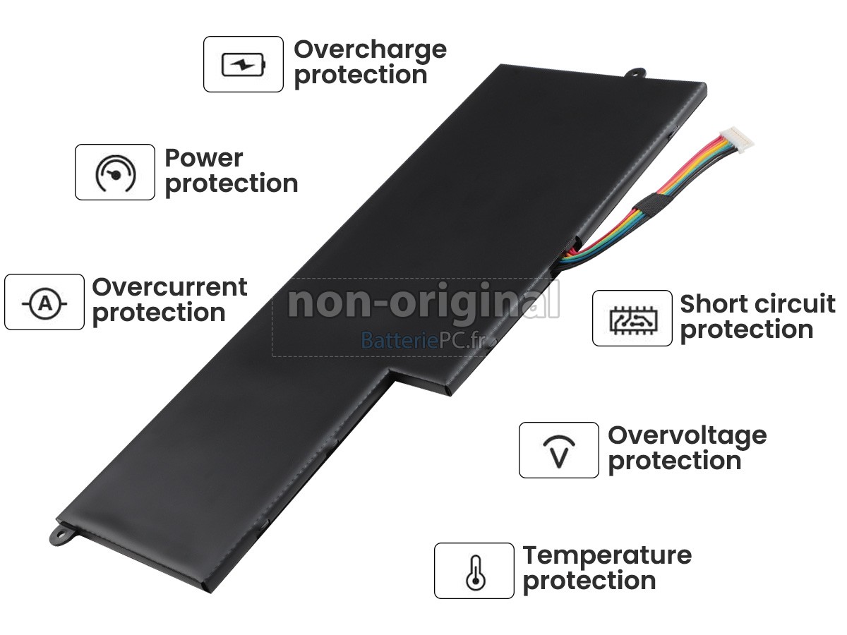 Nous utilisons la puce de Texas (USA) intelligente, pour vous assurer que la batterie se charge plus rapidement, et que la précision de la détection de la température, de la tension et du courant est plus fiable; le boîtier de la batterie conçue est identique à celle d'origine, 100% compatible avec votre ordinateur portable, pour que notre batterie ordinateur portable Acer Aspire V5-122P-0681 est compatible complètement avec votre ordinateur portable, et que vous seriez plus rassuré lors de l'utilisation de ces batteries.