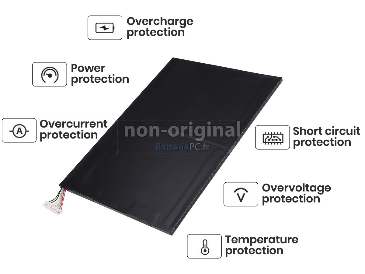 Nous utilisons la puce de Texas (USA) intelligente, pour vous assurer que la batterie se charge plus rapidement, et que la précision de la détection de la température, de la tension et du courant est plus fiable; le boîtier de la batterie conçue est identique à celle d'origine, 100% compatible avec votre ordinateur portable, pour que notre batterie ordinateur portable Acer Iconia Tab A3-A10 est compatible complètement avec votre ordinateur portable, et que vous seriez plus rassuré lors de l'utilisation de ces batteries.