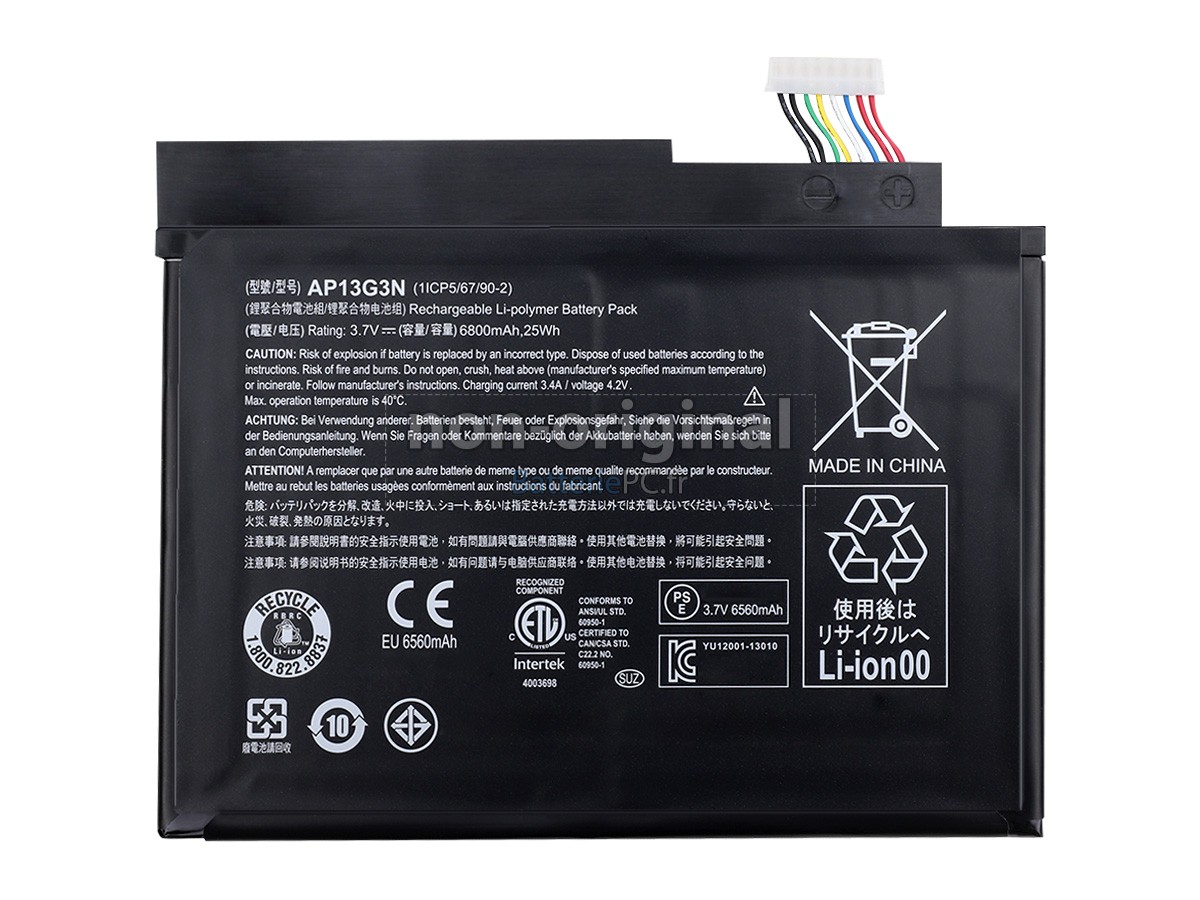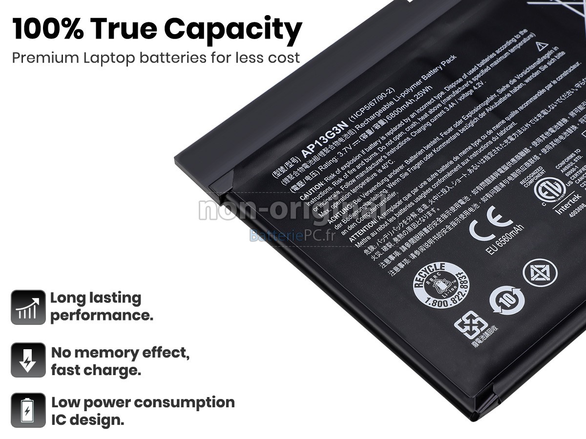 Nous utilisons la puce de Texas (USA) intelligente, pour vous assurer que la batterie se charge plus rapidement, et que la précision de la détection de la température, de la tension et du courant est plus fiable; le boîtier de la batterie conçue est identique à celle d'origine, 100% compatible avec votre ordinateur portable, pour que notre batterie ordinateur portable Acer Iconia W3-810 est compatible complètement avec votre ordinateur portable, et que vous seriez plus rassuré lors de l'utilisation de ces batteries.