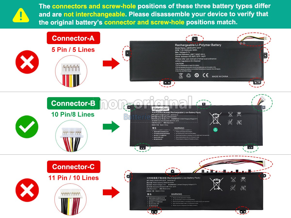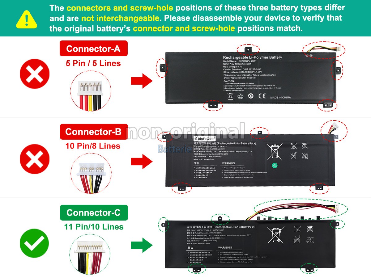 Les batteries vendues sur BatteriePC.fr sont des produits de remplacement de haute qualité. Les logos et les marques concernées appartiennent au registraire d'origine. Les marques et les modèles mentionnés ici par nous sont uniquement pour vous montrer la compatibilité des produits, afin que les clients puissent acheter correctement les produits dont ils ont besoin. En cas d'insatisfaction sur nos produits, veuillez nous contacter en ligne ou nous écrire via e-mail. Nous vous répondrons dans les 24 heures. Notre objectif est de rendre le client satisfait à 100%.