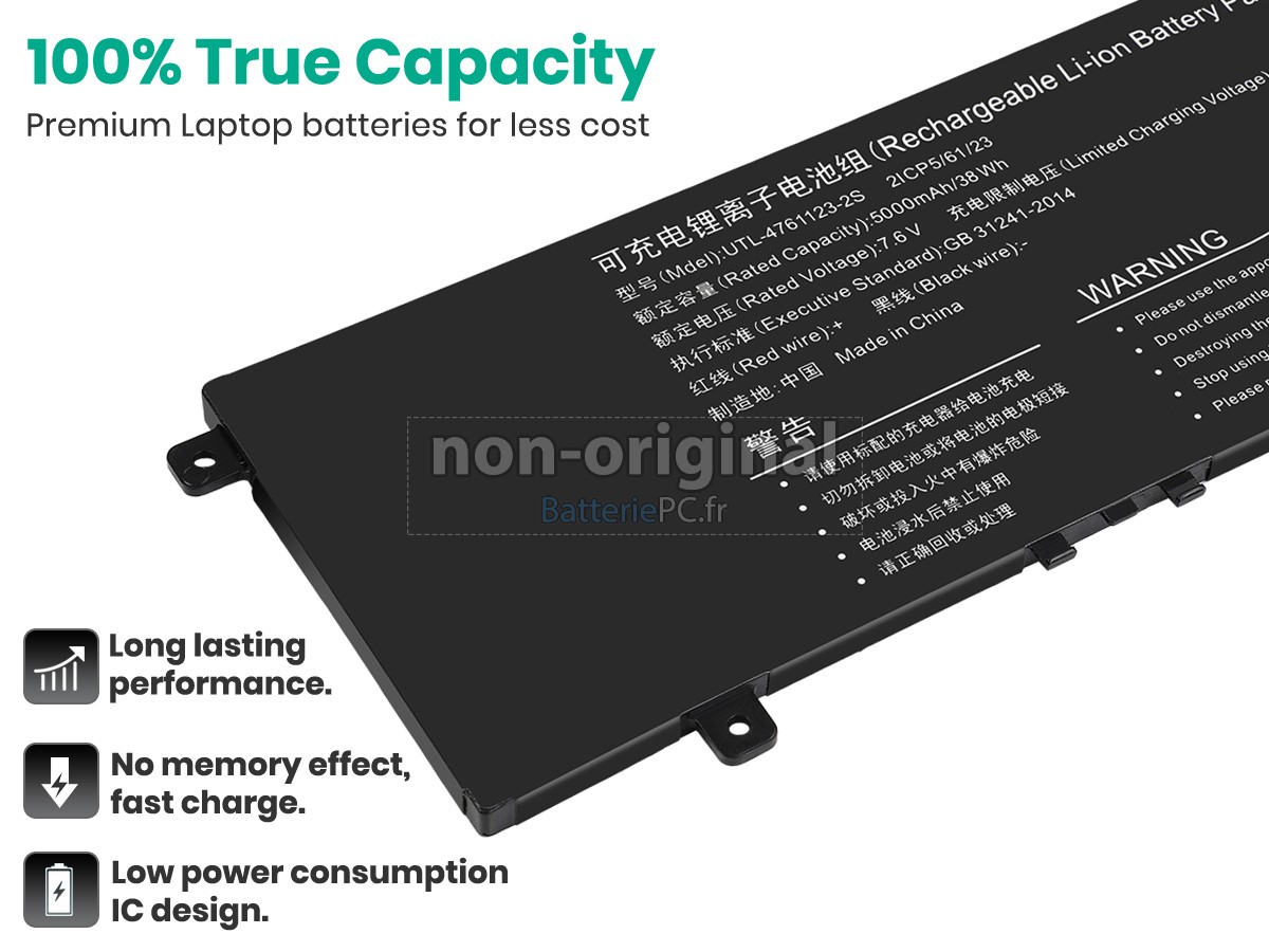 Nous utilisons la puce de Texas (USA) intelligente, pour vous assurer que la batterie se charge plus rapidement, et que la précision de la détection de la température, de la tension et du courant est plus fiable; le boîtier de la batterie conçue est identique à celle d'origine, 100% compatible avec votre ordinateur portable, pour que notre batterie ordinateur portable Alldocube 4761123 est compatible complètement avec votre ordinateur portable, et que vous seriez plus rassuré lors de l'utilisation de ces batteries.