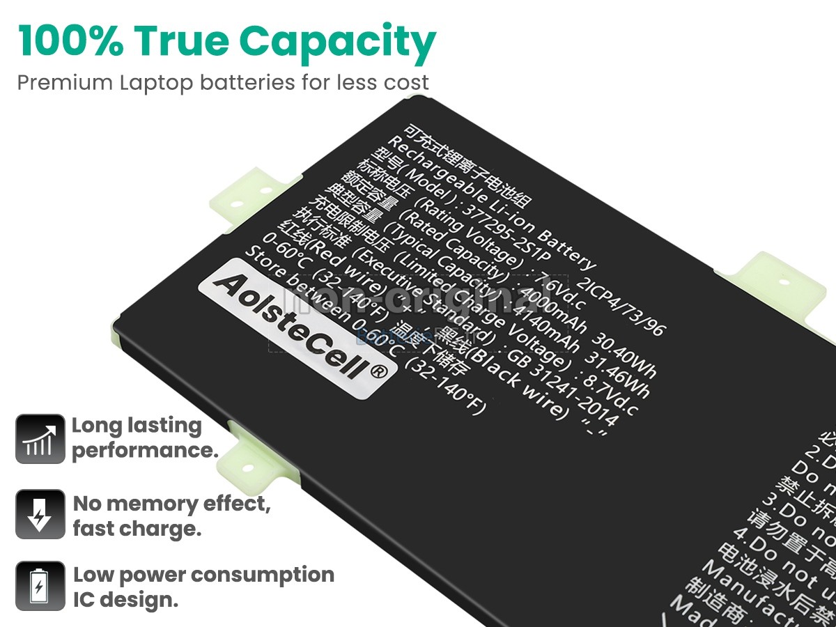 Nous utilisons la puce de Texas (USA) intelligente, pour vous assurer que la batterie se charge plus rapidement, et que la précision de la détection de la température, de la tension et du courant est plus fiable; le boîtier de la batterie conçue est identique à celle d'origine, 100% compatible avec votre ordinateur portable, pour que notre batterie ordinateur portable AolsteCell 377295-2S1P est compatible complètement avec votre ordinateur portable, et que vous seriez plus rassuré lors de l'utilisation de ces batteries.