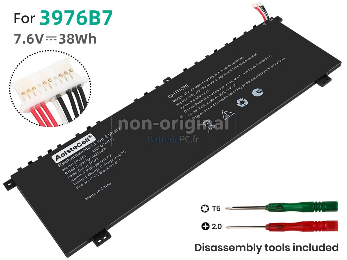 Cela dépend des besoins réels lors du remplacement de la batterie. Si vous achetez une batterie externe et qu'elle peut être facilement retirée et installée à la main, nous ne donnerons pas l'outil de démontage gratuitement. Si vous remplacez la batterie à l'intérieur de l'ordinateur ou si vous devez utiliser un outil pendant le processus de remplacement, nous mettrons les outils de démontage offerts dans le même emballage que la batterie que vous achetez, avant que vous les demandiez, ce qui vous permettra donc de remplacer la batterie sans obstacle.Quelle différence est-elle entre la batterie pc AolsteCell 3976B7 et la batterie d'origine?