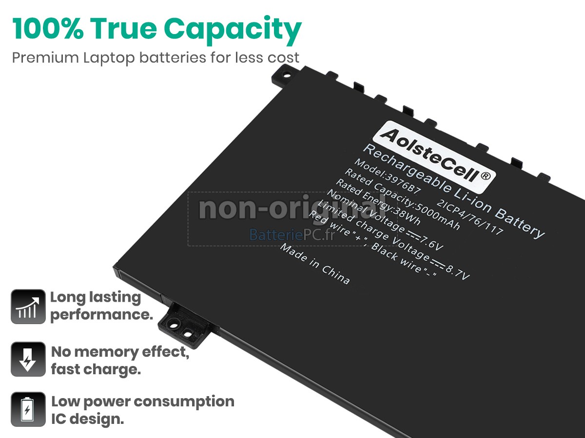 Nous utilisons la puce de Texas (USA) intelligente, pour vous assurer que la batterie se charge plus rapidement, et que la précision de la détection de la température, de la tension et du courant est plus fiable; le boîtier de la batterie conçue est identique à celle d'origine, 100% compatible avec votre ordinateur portable, pour que notre batterie ordinateur portable AolsteCell 3976B7 est compatible complètement avec votre ordinateur portable, et que vous seriez plus rassuré lors de l'utilisation de ces batteries.