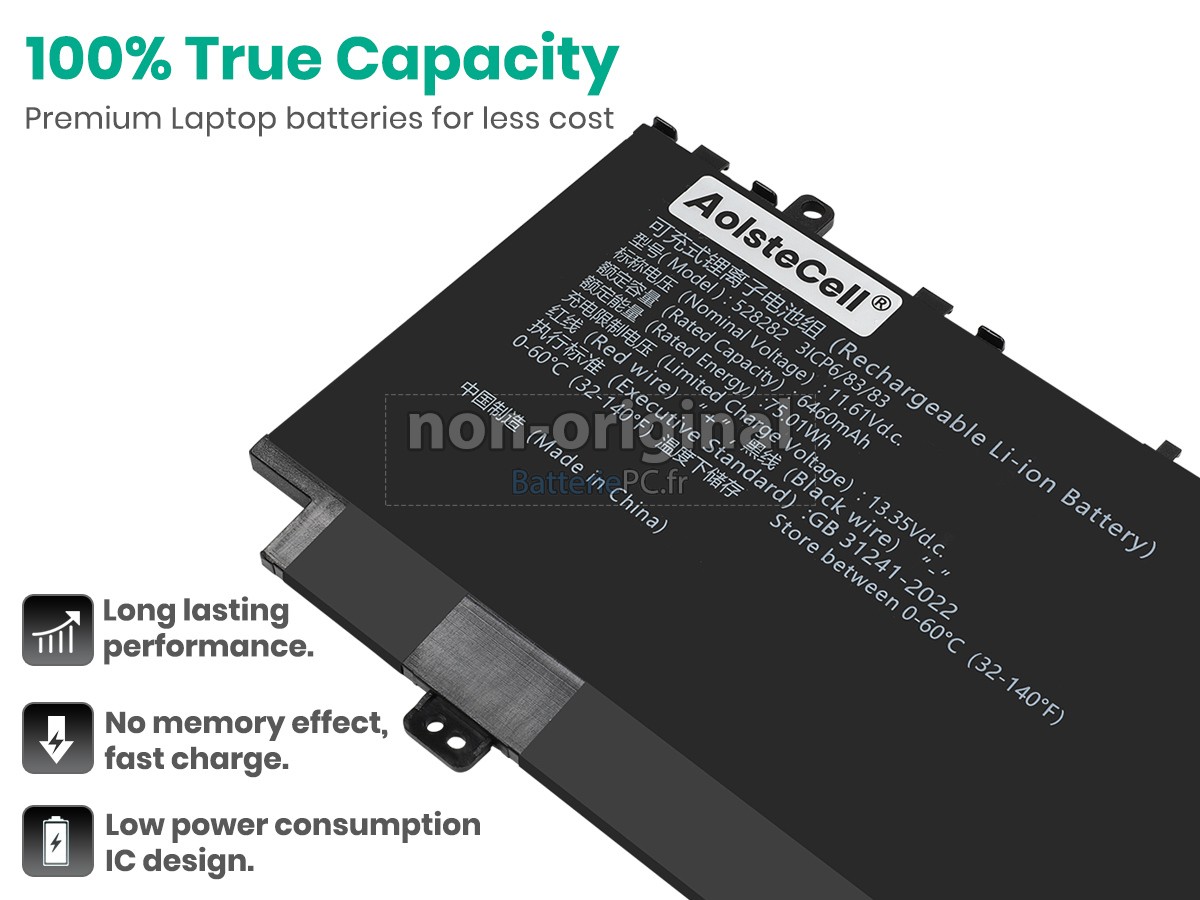 Nous utilisons la puce de Texas (USA) intelligente, pour vous assurer que la batterie se charge plus rapidement, et que la précision de la détection de la température, de la tension et du courant est plus fiable; le boîtier de la batterie conçue est identique à celle d'origine, 100% compatible avec votre ordinateur portable, pour que notre batterie ordinateur portable AolsteCell 528282 est compatible complètement avec votre ordinateur portable, et que vous seriez plus rassuré lors de l'utilisation de ces batteries.