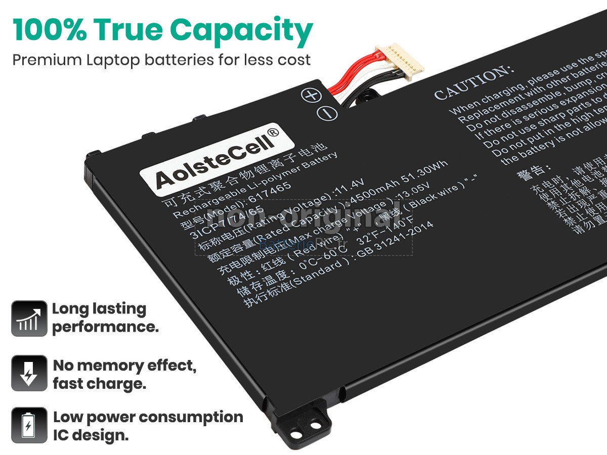 Le stockage incorrect, ou la durée de stockage longue endommagera considérablement les performances et la durée de vie de la batterie. Nous vendons uniquement la dernières batterie de remplacement pour AolsteCell 617465 au client.