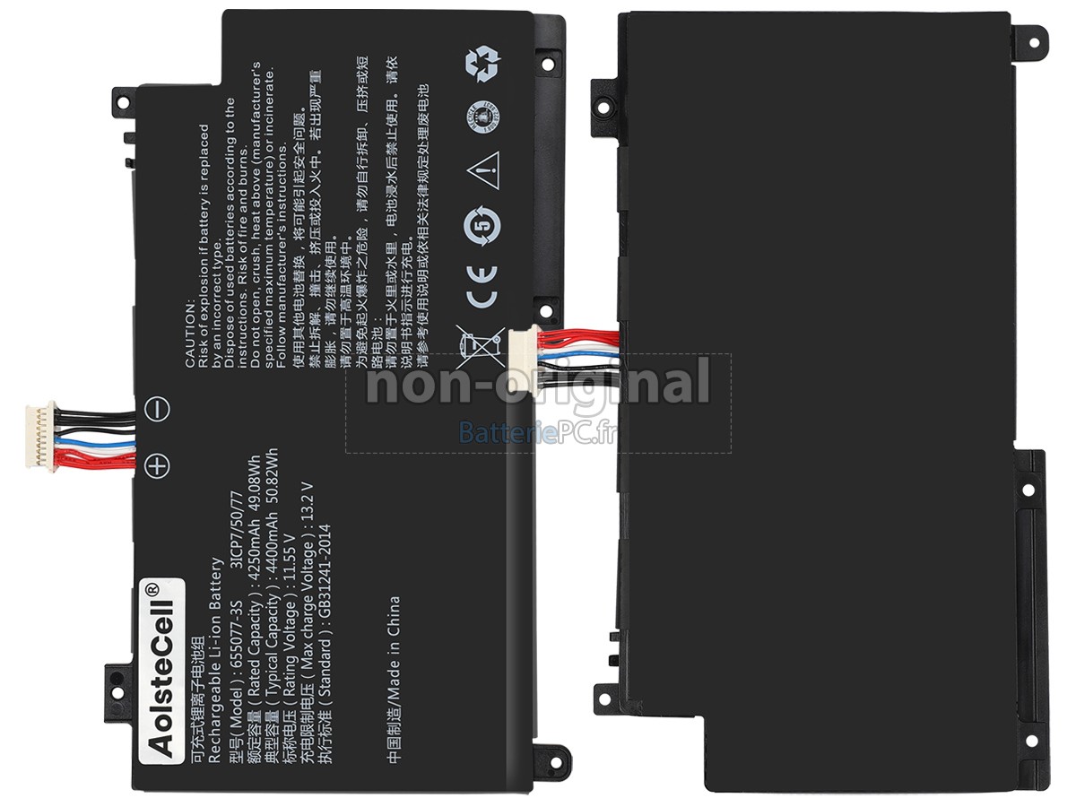 Nous utilisons la puce de Texas (USA) intelligente, pour vous assurer que la batterie se charge plus rapidement, et que la précision de la détection de la température, de la tension et du courant est plus fiable; le boîtier de la batterie conçue est identique à celle d'origine, 100% compatible avec votre ordinateur portable, pour que notre batterie ordinateur portable AolsteCell 655077-3S est compatible complètement avec votre ordinateur portable, et que vous seriez plus rassuré lors de l'utilisation de ces batteries.