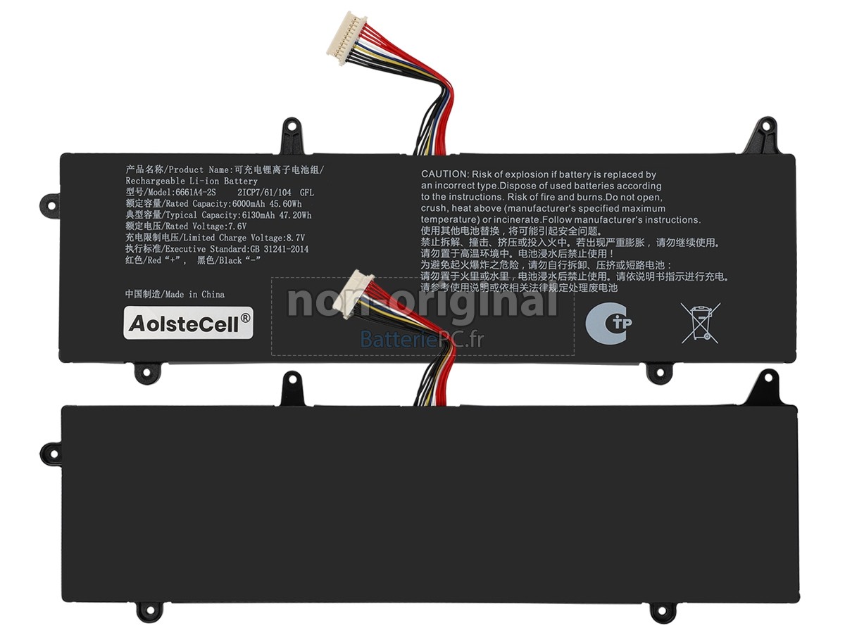Le stockage incorrect, ou la durée de stockage longue endommagera considérablement les performances et la durée de vie de la batterie. Nous vendons uniquement la dernières batterie de remplacement pour AolsteCell 6661A4-2S au client.