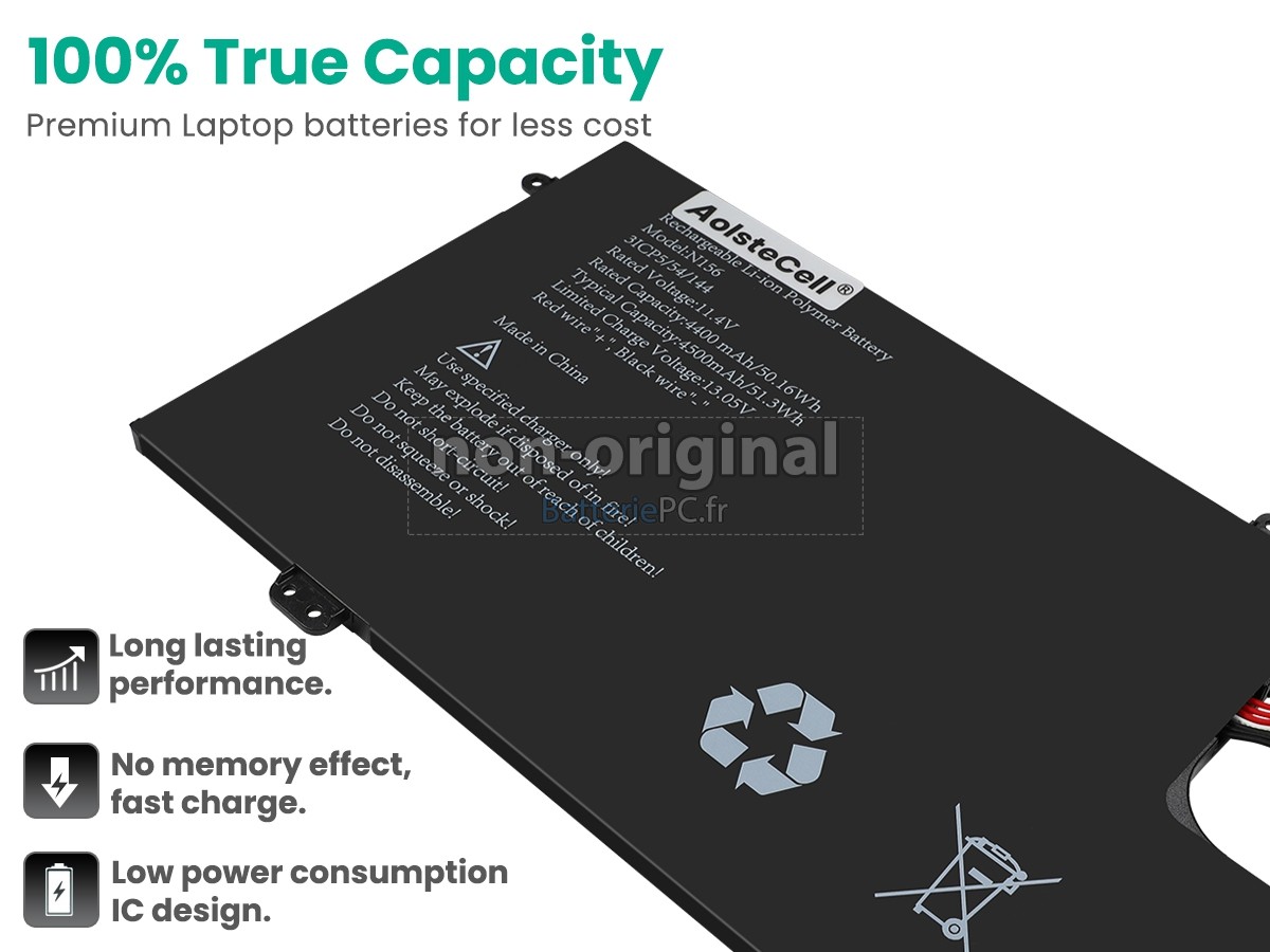 Nous utilisons la puce de Texas (USA) intelligente, pour vous assurer que la batterie se charge plus rapidement, et que la précision de la détection de la température, de la tension et du courant est plus fiable; le boîtier de la batterie conçue est identique à celle d'origine, 100% compatible avec votre ordinateur portable, pour que notre batterie ordinateur portable AolsteCell N156 est compatible complètement avec votre ordinateur portable, et que vous seriez plus rassuré lors de l'utilisation de ces batteries.