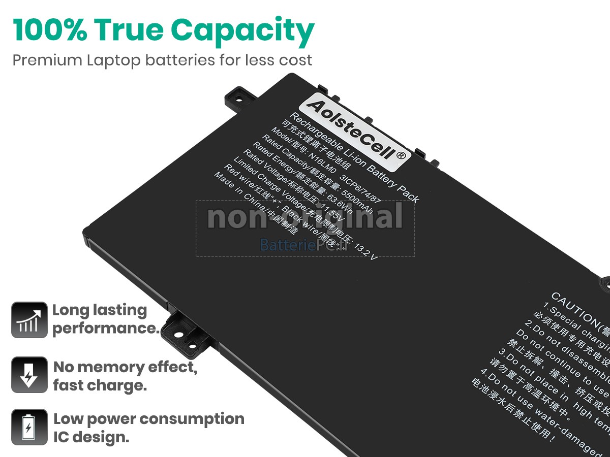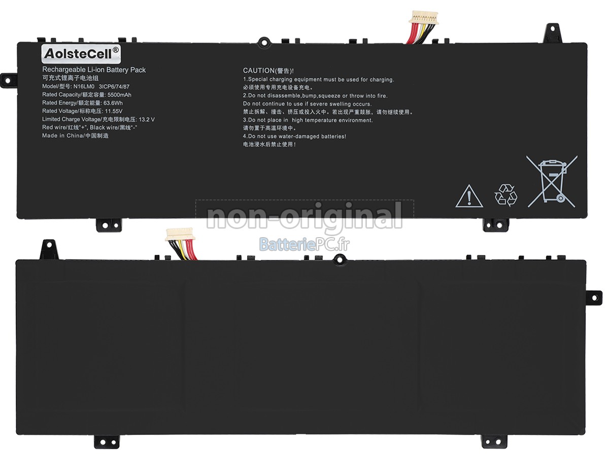Nous utilisons la puce de Texas (USA) intelligente, pour vous assurer que la batterie se charge plus rapidement, et que la précision de la détection de la température, de la tension et du courant est plus fiable; le boîtier de la batterie conçue est identique à celle d'origine, 100% compatible avec votre ordinateur portable, pour que notre batterie ordinateur portable AolsteCell N16LM0 est compatible complètement avec votre ordinateur portable, et que vous seriez plus rassuré lors de l'utilisation de ces batteries.