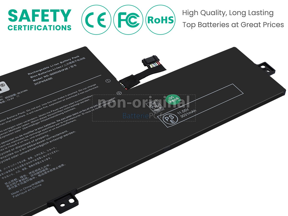 Nous utilisons la puce de Texas (USA) intelligente, pour vous assurer que la batterie se charge plus rapidement, et que la précision de la détection de la température, de la tension et du courant est plus fiable; le boîtier de la batterie conçue est identique à celle d'origine, 100% compatible avec votre ordinateur portable, pour que notre batterie ordinateur portable AolsteCell Q25G3S1P3E est compatible complètement avec votre ordinateur portable, et que vous seriez plus rassuré lors de l'utilisation de ces batteries.