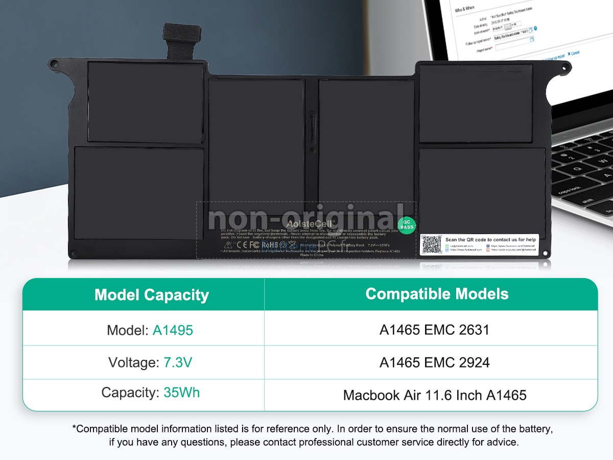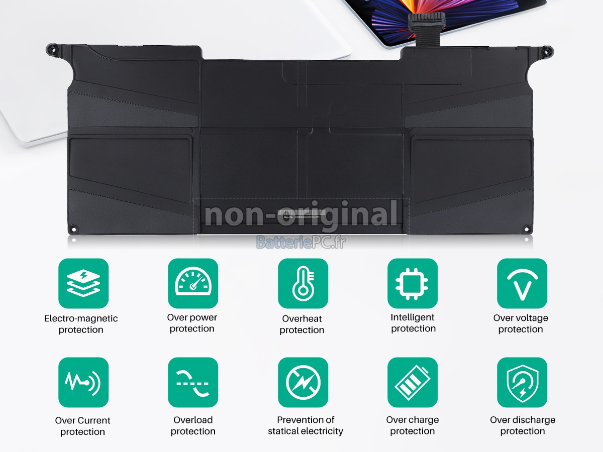 Nous utilisons la puce de Texas (USA) intelligente, pour vous assurer que la batterie se charge plus rapidement, et que la précision de la détection de la température, de la tension et du courant est plus fiable; le boîtier de la batterie conçue est identique à celle d'origine, 100% compatible avec votre ordinateur portable, pour que notre batterie ordinateur portable Apple MacBook Air 11.6 inch MJVM2LL/A est compatible complètement avec votre ordinateur portable, et que vous seriez plus rassuré lors de l'utilisation de ces batteries.
