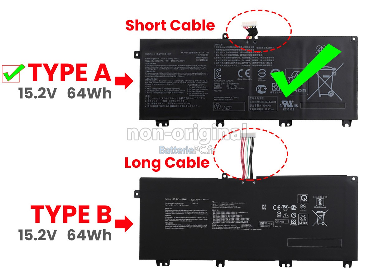 Nous sommes heureux de vous fournir des produits de bonne qualité et des services excellents, pour vous rendre plus rassuré lorsque vous achetez la batterie ordinateur portable Asus B41N1711. Nous vous proposons de bien noter les consignes ci-dessous pour profiter de nos meilleurs services.- Merci d'indiquer le modèle de votre appareil pour que notre service client puisse voir si vous avez acheté la bonne batterie, afin d'éviter l'achat de batterie non adaptée.