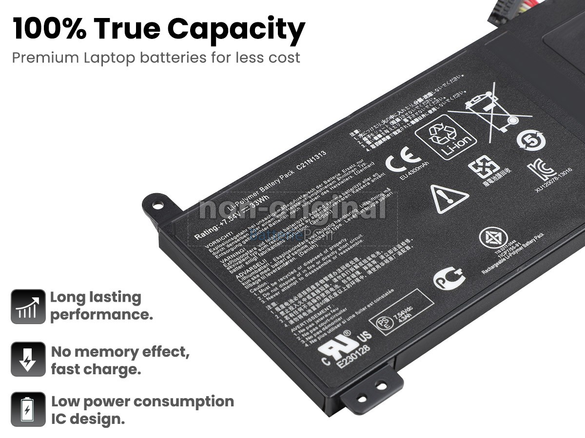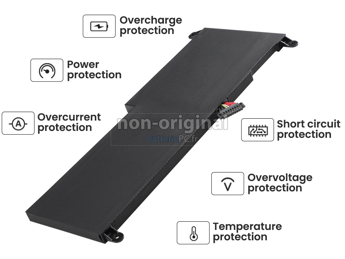 Nous utilisons la puce de Texas (USA) intelligente, pour vous assurer que la batterie se charge plus rapidement, et que la précision de la détection de la température, de la tension et du courant est plus fiable; le boîtier de la batterie conçue est identique à celle d'origine, 100% compatible avec votre ordinateur portable, pour que notre batterie ordinateur portable Asus C21N1313 est compatible complètement avec votre ordinateur portable, et que vous seriez plus rassuré lors de l'utilisation de ces batteries.