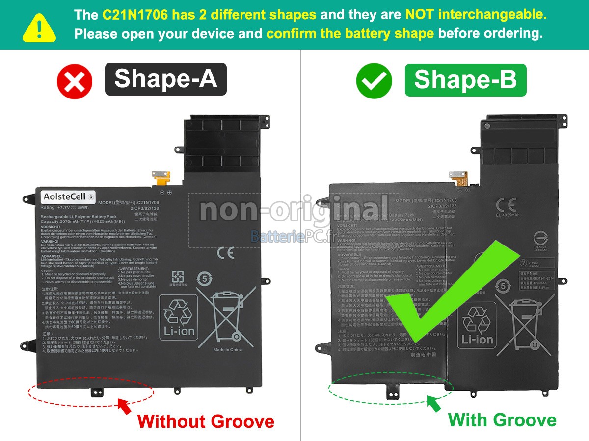 Quels consignes à observer lorsque vous achetez la batterie pour Asus C21N1706 notebook ici?