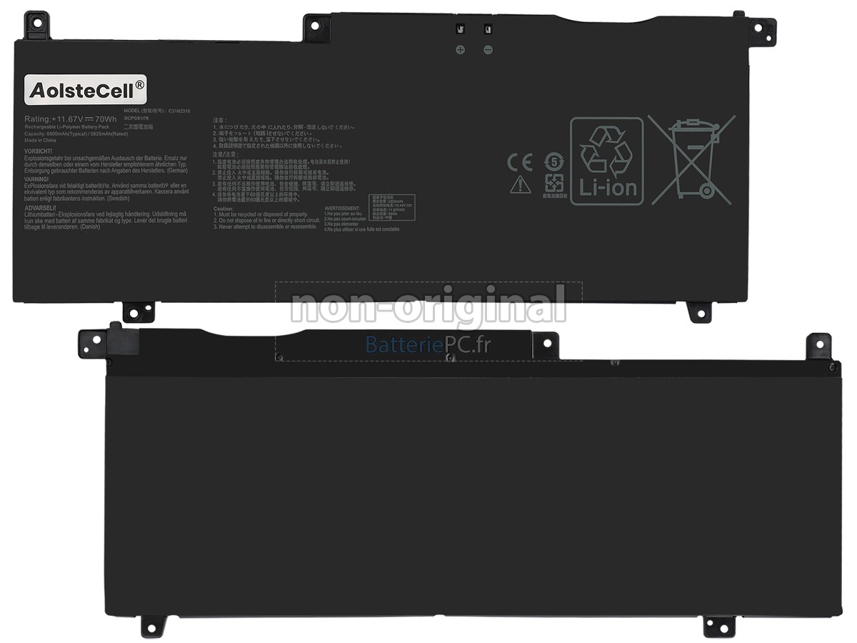 Nous utilisons la puce de Texas (USA) intelligente, pour vous assurer que la batterie se charge plus rapidement, et que la précision de la détection de la température, de la tension et du courant est plus fiable; le boîtier de la batterie conçue est identique à celle d'origine, 100% compatible avec votre ordinateur portable, pour que notre batterie ordinateur portable Asus ProART PZ13 HT5306Q est compatible complètement avec votre ordinateur portable, et que vous seriez plus rassuré lors de l'utilisation de ces batteries.