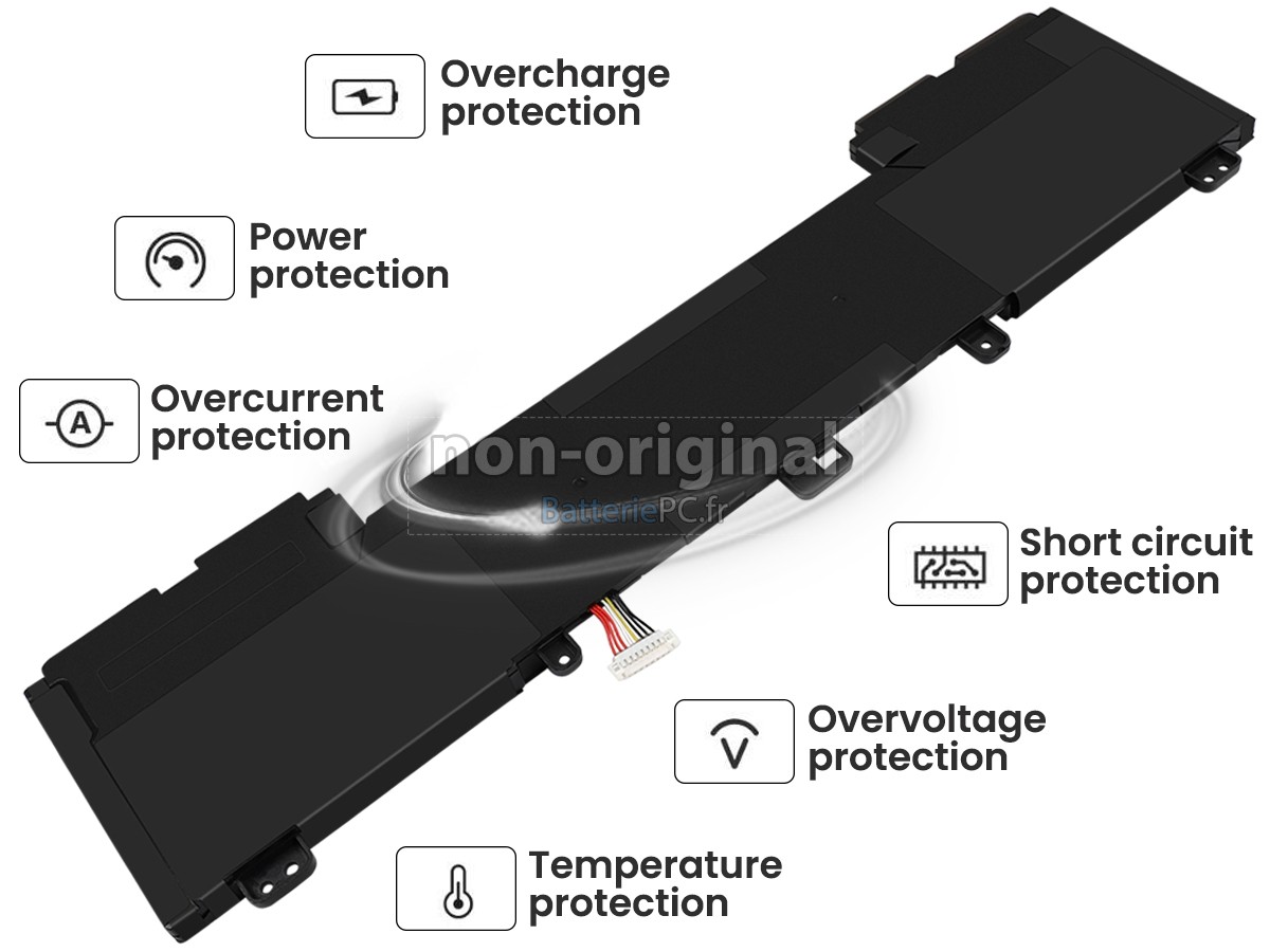 Nous utilisons la puce de Texas (USA) intelligente, pour vous assurer que la batterie se charge plus rapidement, et que la précision de la détection de la température, de la tension et du courant est plus fiable; le boîtier de la batterie conçue est identique à celle d'origine, 100% compatible avec votre ordinateur portable, pour que notre batterie ordinateur portable Asus ZenBook Pro UX550VE-BN073T est compatible complètement avec votre ordinateur portable, et que vous seriez plus rassuré lors de l'utilisation de ces batteries.
