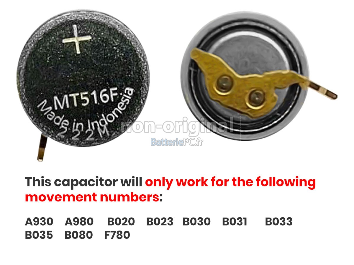 Nous sommes heureux de vous fournir des produits de bonne qualité et des services excellents, pour vous rendre plus rassuré lorsque vous achetez la batterie CITIZEN MT516F. Nous vous proposons de bien noter les consignes ci-dessous pour profiter de nos meilleurs services.- Merci d'indiquer le modèle de votre appareil pour que notre service client puisse voir si vous avez acheté la bonne batterie, afin d'éviter l'achat de batterie non adaptée.