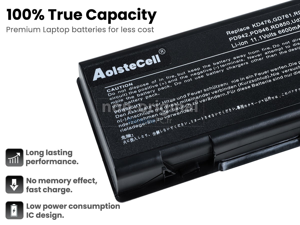 Nos batterie pour Dell Latitude 131L notebook pc, comme celles d'ordinateurs de marque, sont montées avec les cellules de la qualité A+ et les puces intelligentes de qualité supérieure. Mais nous personnalisons notre propre boîtier de batterie et réduisons le coût supplémentaire requis par la marque, c'est pourquoi les clients peuvent acheter des batteries de remplacement de qualité d'origine au prix compétitif.