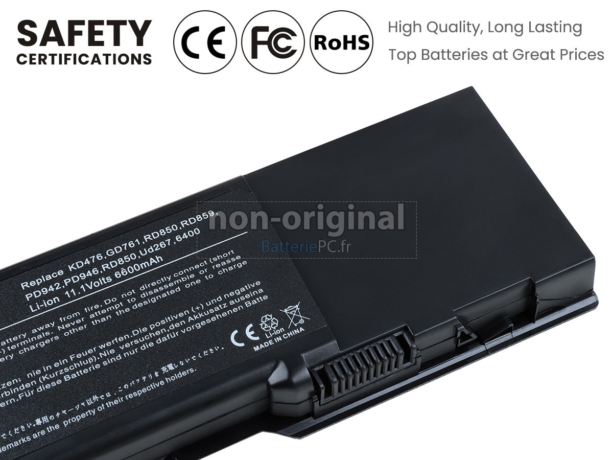 Nous utilisons la puce de Texas (USA) intelligente, pour vous assurer que la batterie se charge plus rapidement, et que la précision de la détection de la température, de la tension et du courant est plus fiable; le boîtier de la batterie conçue est identique à celle d'origine, 100% compatible avec votre ordinateur portable, pour que notre batterie ordinateur portable Dell Latitude 131L est compatible complètement avec votre ordinateur portable, et que vous seriez plus rassuré lors de l'utilisation de ces batteries.