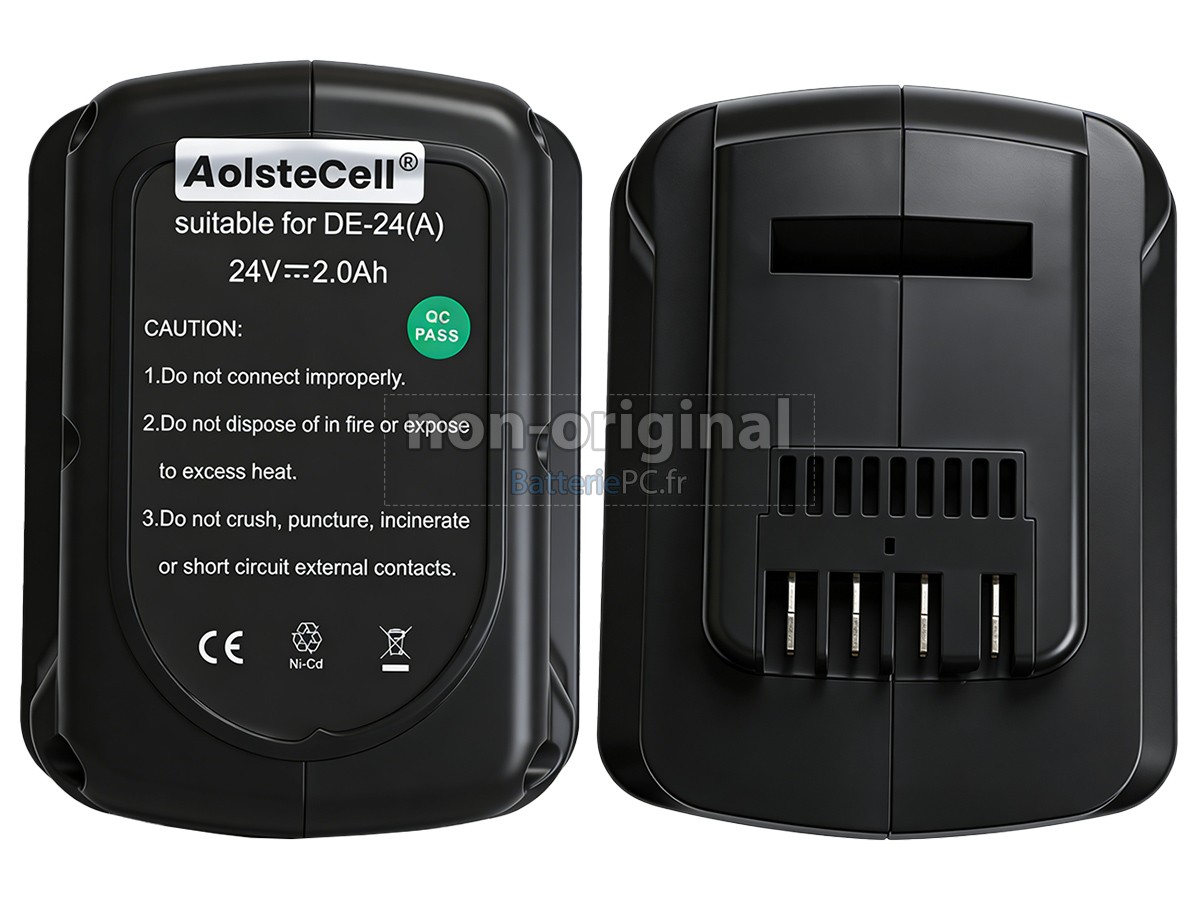 Nous sommes heureux de vous fournir des produits de bonne qualité et des services excellents, pour vous rendre plus rassuré lorsque vous achetez la batterie DeWALT DW005. Nous vous proposons de bien noter les consignes ci-dessous pour profiter de nos meilleurs services.- Merci d'indiquer le modèle de votre appareil pour que notre service client puisse voir si vous avez acheté la bonne batterie, afin d'éviter l'achat de batterie non adaptée.