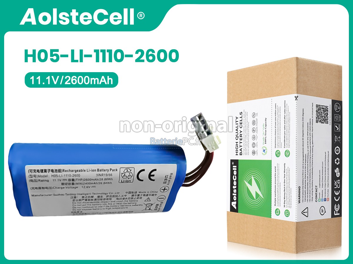 Nous sommes heureux de vous fournir des produits de bonne qualité et des services excellents, pour vous rendre plus rassuré lorsque vous achetez la batterie Ecovacs H05-LI-1110-2600. Nous vous proposons de bien noter les consignes ci-dessous pour profiter de nos meilleurs services.- Merci d'indiquer le modèle de votre appareil pour que notre service client puisse voir si vous avez acheté la bonne batterie, afin d'éviter l'achat de batterie non adaptée.