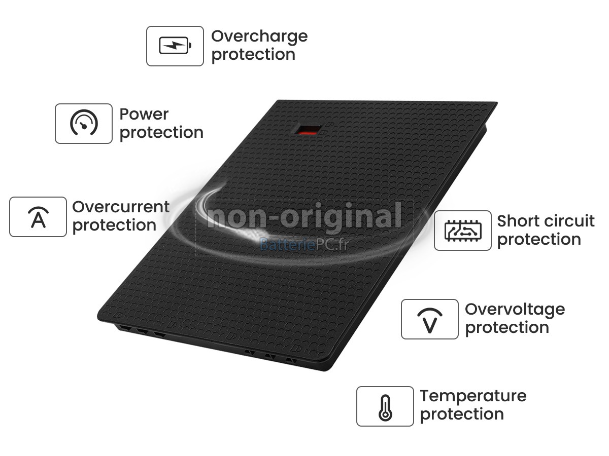 Nous utilisons la puce de Texas (USA) intelligente, pour vous assurer que la batterie se charge plus rapidement, et que la précision de la détection de la température, de la tension et du courant est plus fiable; le boîtier de la batterie conçue est identique à celle d'origine, 100% compatible avec votre ordinateur portable, pour que notre batterie ordinateur portable Getac 242122100002 est compatible complètement avec votre ordinateur portable, et que vous seriez plus rassuré lors de l'utilisation de ces batteries.