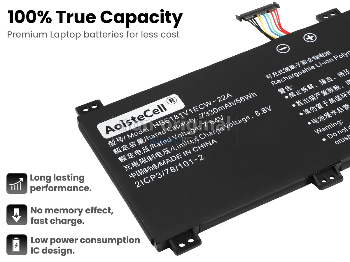 Nous utilisons la puce de Texas (USA) intelligente, pour vous assurer que la batterie se charge plus rapidement, et que la précision de la détection de la température, de la tension et du courant est plus fiable; le boîtier de la batterie conçue est identique à celle d'origine, 100% compatible avec votre ordinateur portable, pour que notre batterie ordinateur portable Huawei HB6181V1ECW-22A est compatible complètement avec votre ordinateur portable, et que vous seriez plus rassuré lors de l'utilisation de ces batteries.
