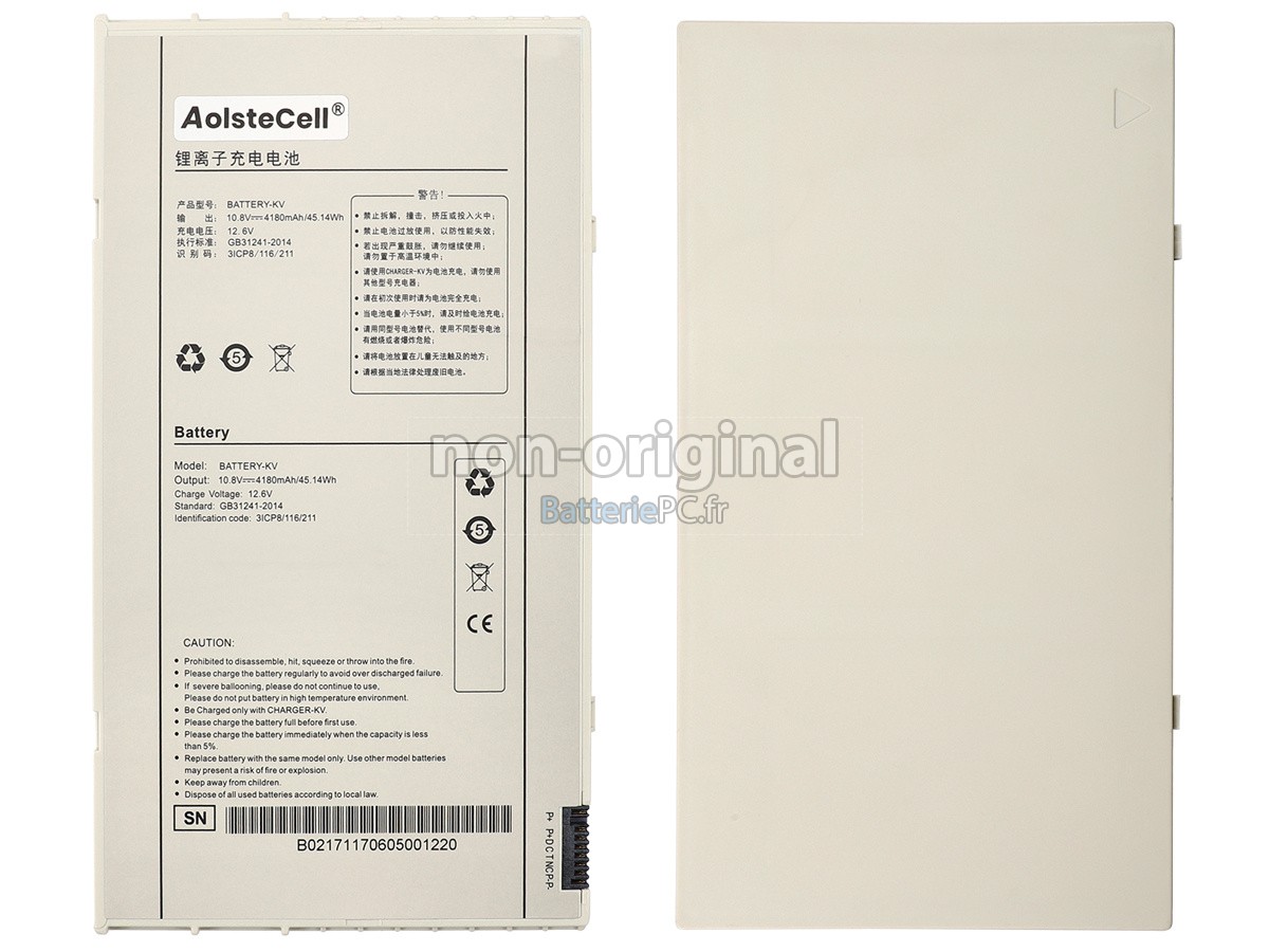 Nous sommes heureux de vous fournir des produits de bonne qualité et des services excellents, pour vous rendre plus rassuré lorsque vous achetez la batterie Iray BATTERY-KV. Nous vous proposons de bien noter les consignes ci-dessous pour profiter de nos meilleurs services.- Merci d'indiquer le modèle de votre appareil pour que notre service client puisse voir si vous avez acheté la bonne batterie, afin d'éviter l'achat de batterie non adaptée.