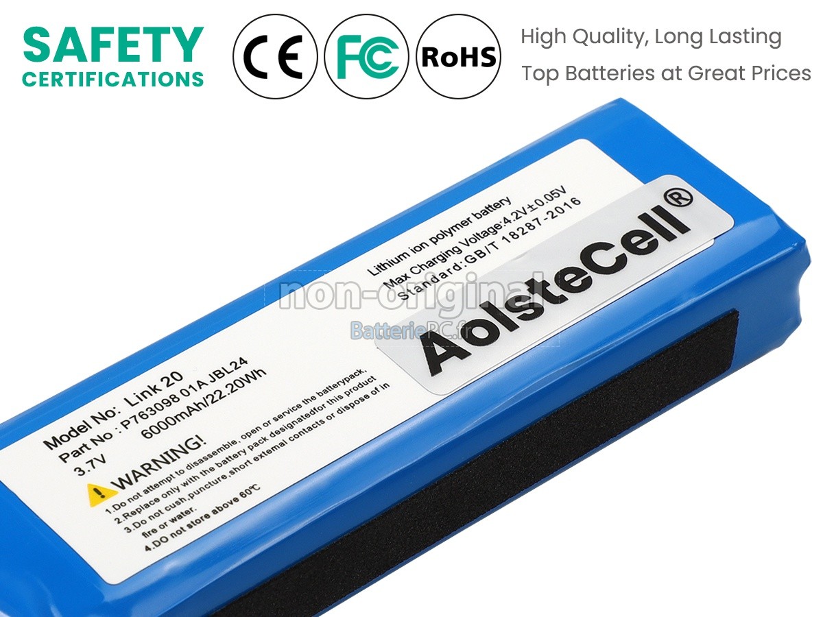 Soyez rassuré d'acheter la batterie pour JBL P763098-01A !