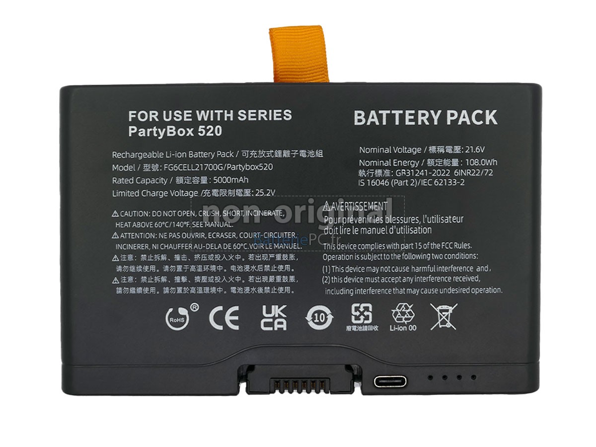 Batterie de haute qualité pour JBL PARTYBOX 720 (5000mAh, 6 cellules)