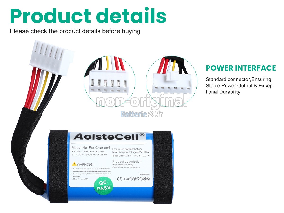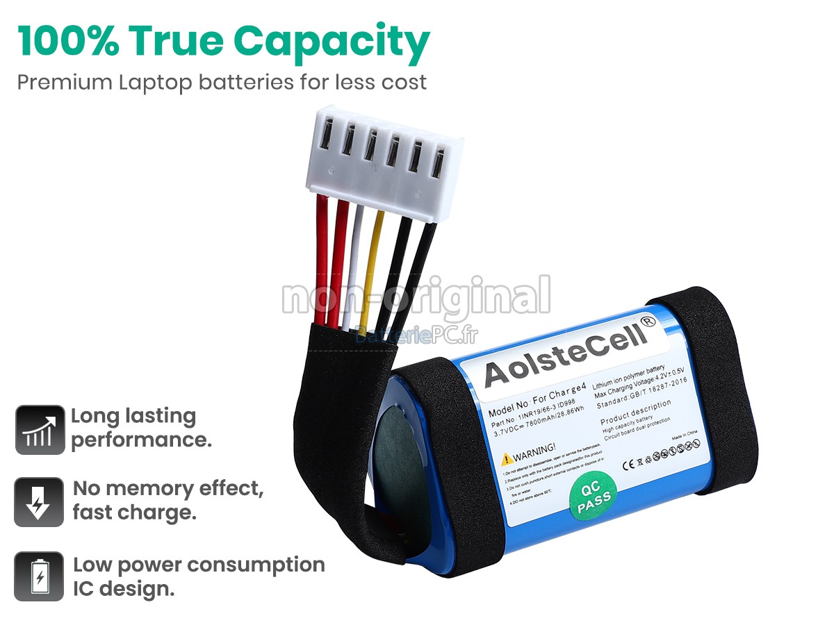 La qualité d'une batterie dépend des cellules qu'elle contient, qui constituent la partie la plus importante de la batterie. Les batteries que nous équipons pour JBL SUN-INTE-118 sont assemblées avec des cellules originales importées de qualité A+ pour garantir une sécurité accrue et une durée de vie plus longue.