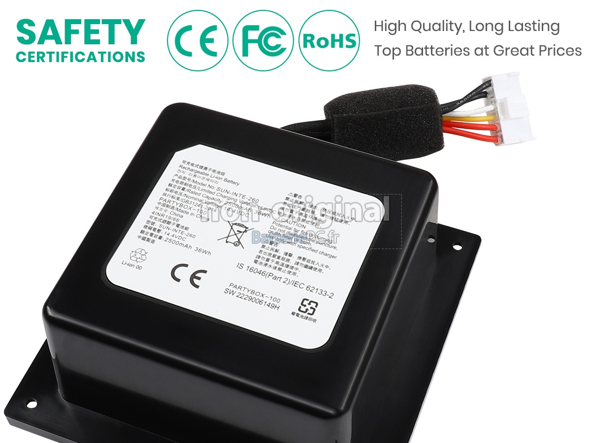 Soyez rassuré d'acheter la batterie pour JBL SUN-INTE-260 !