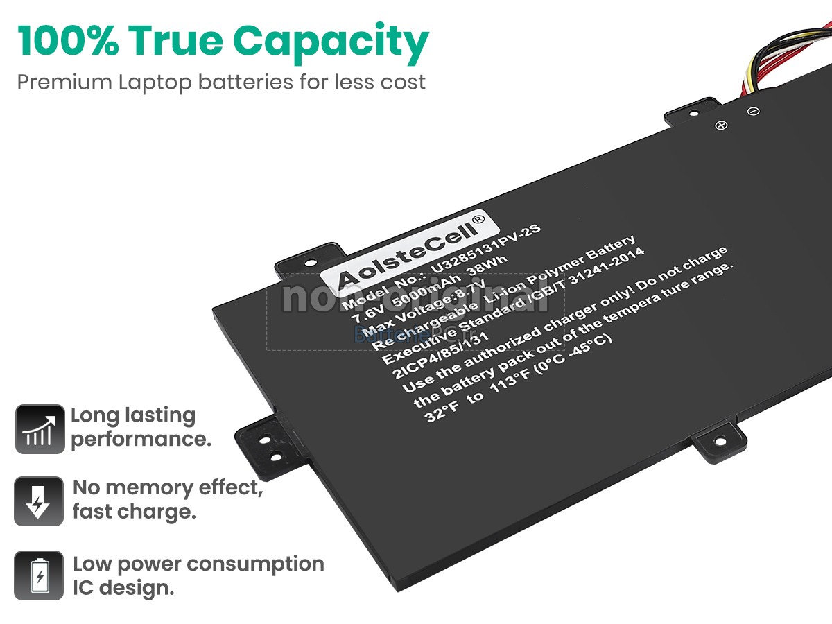 Nous utilisons la puce de Texas (USA) intelligente, pour vous assurer que la batterie se charge plus rapidement, et que la précision de la détection de la température, de la tension et du courant est plus fiable; le boîtier de la batterie conçue est identique à celle d'origine, 100% compatible avec votre ordinateur portable, pour que notre batterie ordinateur portable Jumper U3285131P-2S est compatible complètement avec votre ordinateur portable, et que vous seriez plus rassuré lors de l'utilisation de ces batteries.