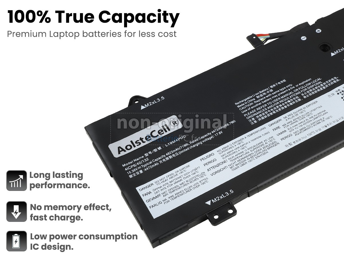 Nous utilisons la puce de Texas (USA) intelligente, pour vous assurer que la batterie se charge plus rapidement, et que la précision de la détection de la température, de la tension et du courant est plus fiable; le boîtier de la batterie conçue est identique à celle d'origine, 100% compatible avec votre ordinateur portable, pour que notre batterie ordinateur portable Lenovo YOGA 7-15ITL5-82BJ00BPSB est compatible complètement avec votre ordinateur portable, et que vous seriez plus rassuré lors de l'utilisation de ces batteries.