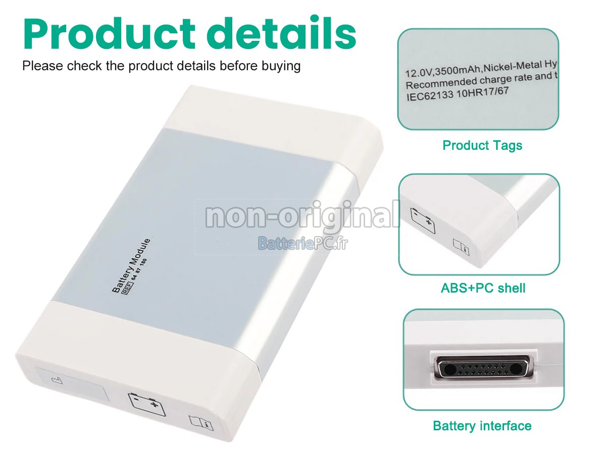 Nous sommes heureux de vous fournir des produits de bonne qualité et des services excellents, pour vous rendre plus rassuré lorsque vous achetez la batterie Maquet SERVO-I. Nous vous proposons de bien noter les consignes ci-dessous pour profiter de nos meilleurs services.- Merci d'indiquer le modèle de votre appareil pour que notre service client puisse voir si vous avez acheté la bonne batterie, afin d'éviter l'achat de batterie non adaptée.