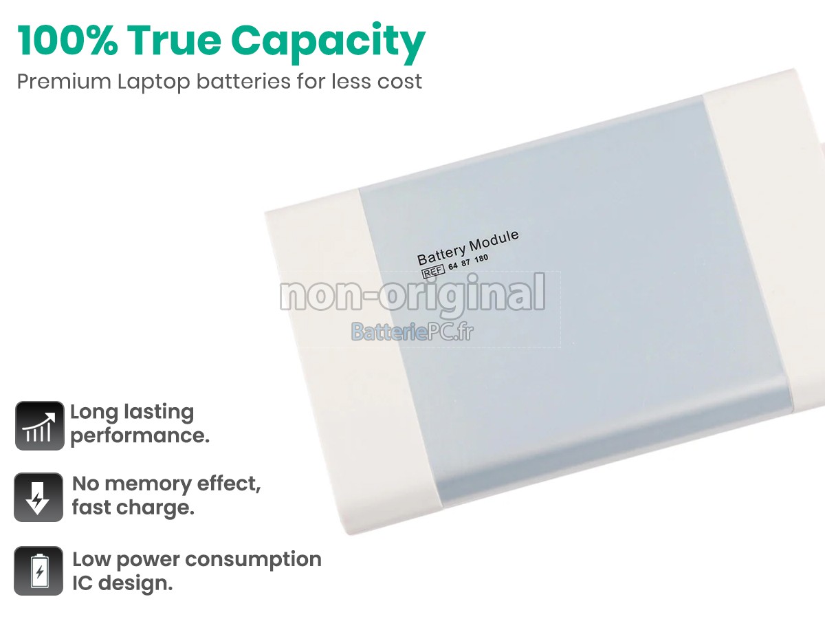 Les batteries vendues sur BatteriePC.fr sont des produits de remplacement de haute qualité. Les logos et les marques concernées appartiennent au registraire d'origine. Les marques et les modèles mentionnés ici par nous sont uniquement pour vous montrer la compatibilité des produits, afin que les clients puissent acheter correctement les produits dont ils ont besoin. En cas d'insatisfaction sur nos produits, veuillez nous contacter en ligne ou nous écrire via e-mail. Nous vous répondrons dans les 24 heures. Notre objectif est de rendre le client satisfait à 100%.