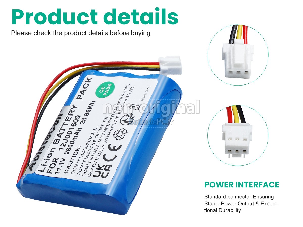 Nous sommes heureux de vous fournir des produits de bonne qualité et des services excellents, pour vous rendre plus rassuré lorsque vous achetez la batterie Moneual 12J001609. Nous vous proposons de bien noter les consignes ci-dessous pour profiter de nos meilleurs services.- Merci d'indiquer le modèle de votre appareil pour que notre service client puisse voir si vous avez acheté la bonne batterie, afin d'éviter l'achat de batterie non adaptée.