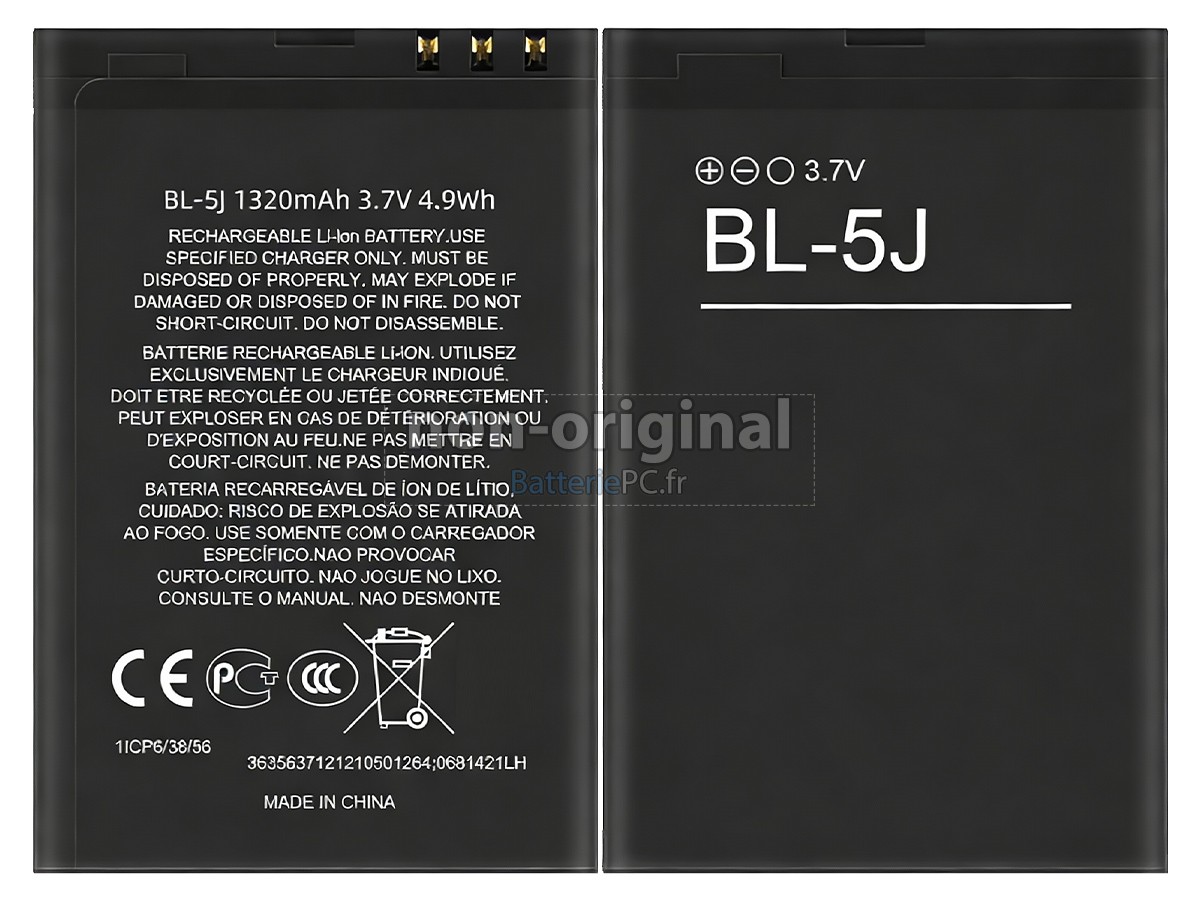 La qualité d'une batterie dépend des cellules qu'elle contient, qui constituent la partie la plus importante de la batterie. Les batteries que nous équipons pour Nokia 5232 sont assemblées avec des cellules originales importées de qualité A+ pour garantir une sécurité accrue et une durée de vie plus longue.