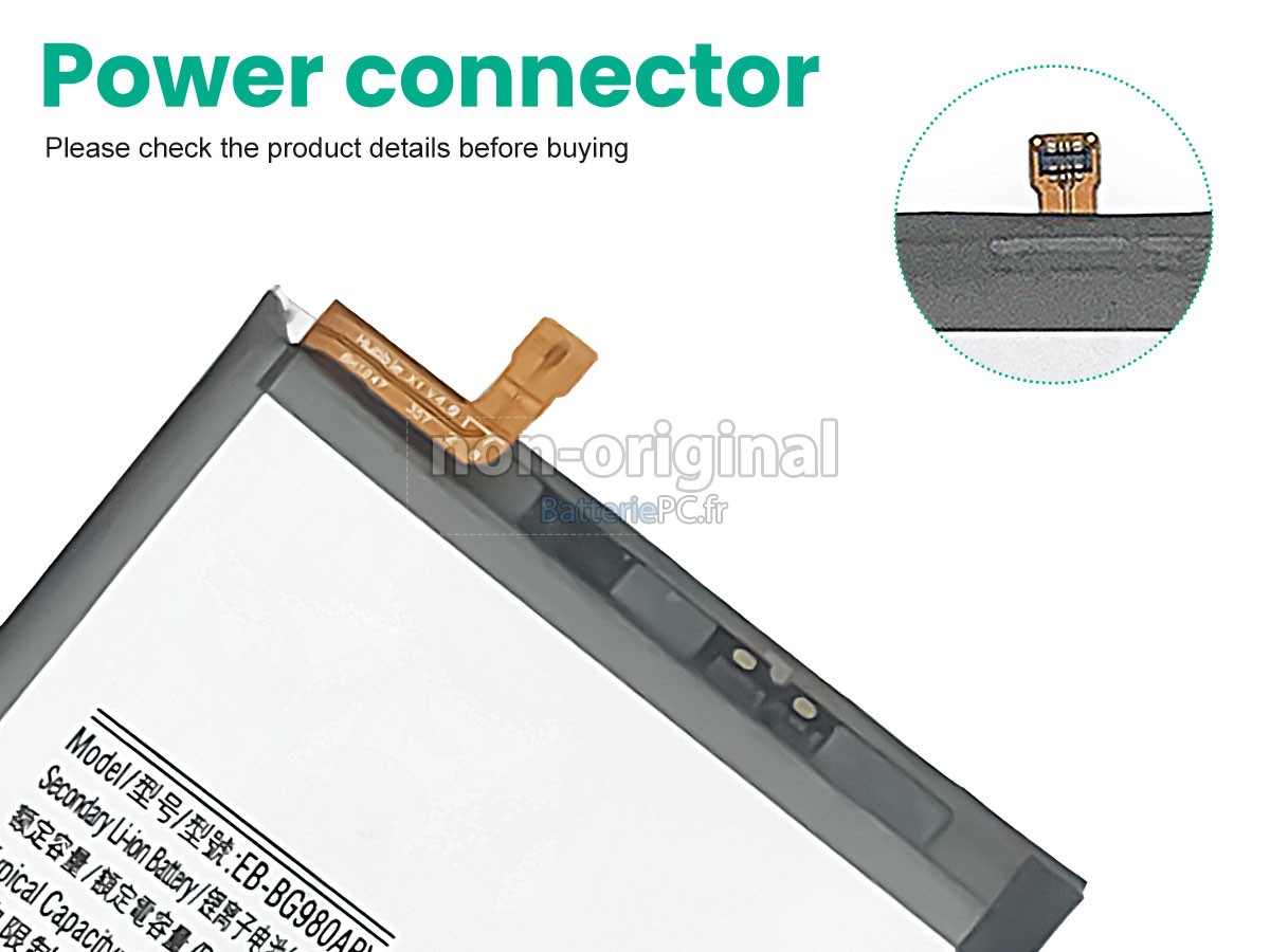 La liste de compatibilité de la batterie Samsung GALAXY S20 5G SM-G981U n'est pas complète. Si vous n'êtes pas sûr qu'elle soit adaptée à votre appareil, vous pouvez nous indiquer le modèle de votre appareil via « Aide à la recherche de produit », nous choisirons rapidement la bonne batterie à vous.