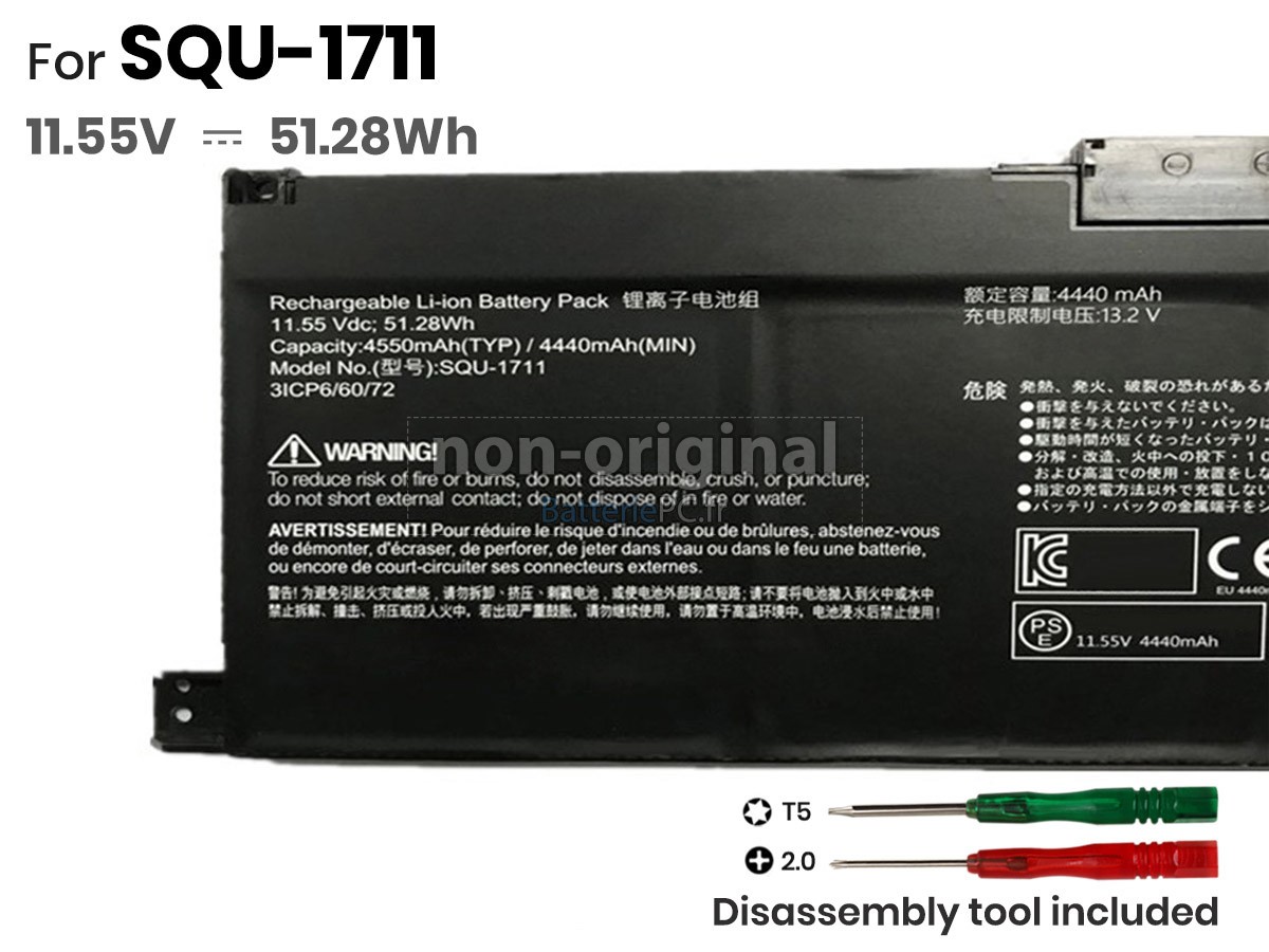 Cela dépend des besoins réels lors du remplacement de la batterie. Si vous achetez une batterie externe et qu'elle peut être facilement retirée et installée à la main, nous ne donnerons pas l'outil de démontage gratuitement. Si vous remplacez la batterie à l'intérieur de l'ordinateur ou si vous devez utiliser un outil pendant le processus de remplacement, nous mettrons les outils de démontage offerts dans le même emballage que la batterie que vous achetez, avant que vous les demandiez, ce qui vous permettra donc de remplacer la batterie sans obstacle.Quelle différence est-elle entre la batterie pc Thunderobot G8000M et la batterie d'origine?